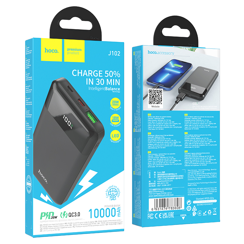 Портативный аккумулятор HOCO J102 10000 mAh PD 20W+22,5W  (черный)