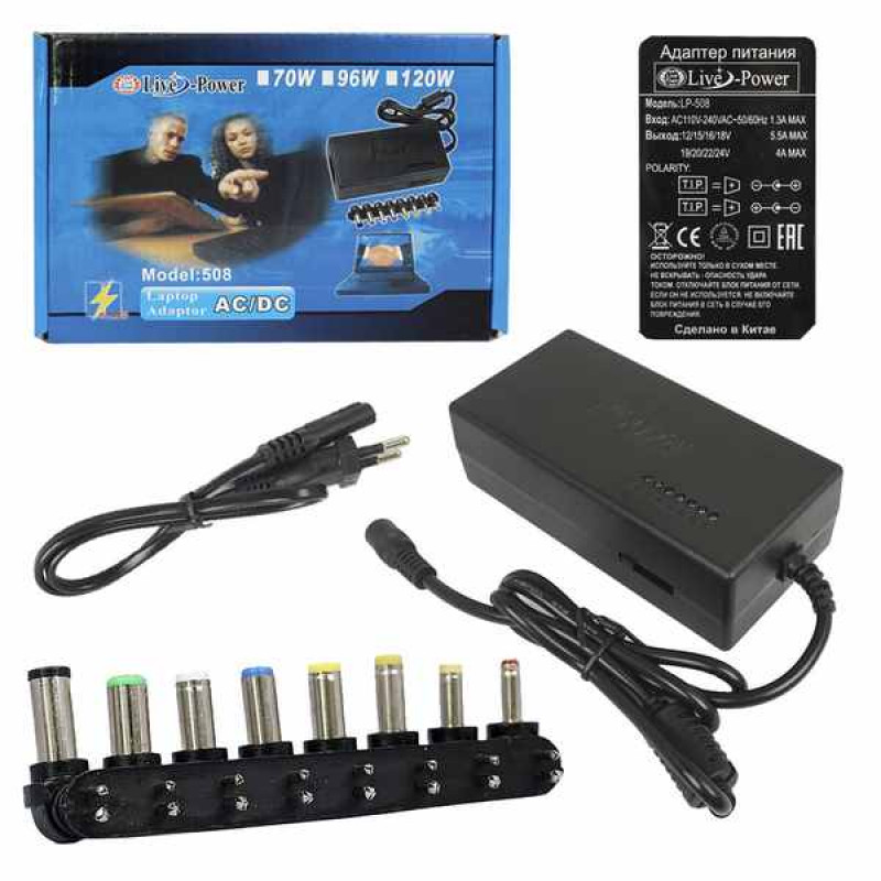 Блок питания универсальный для Ноутбуков LP508 12V-24V 150W + 8 Насадок