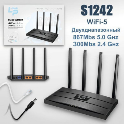 Wi-Fi Роутер LP-LINK WR870 AC1200, 2.4/5ГГц, 4 порта LAN (черный)